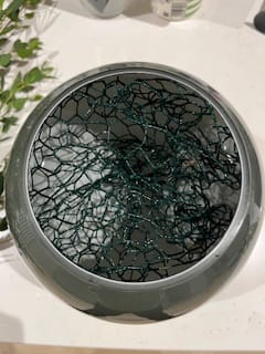 Cut your chicken wire and scrunch up to enable you to place it in the vessel as seen below.