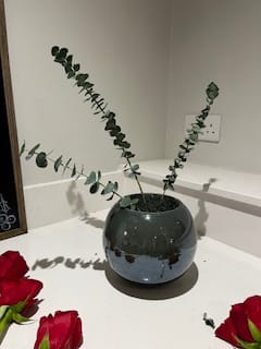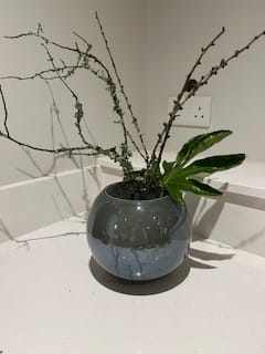 Next I added the x2 fatsia leaves to the right side of the design which balances the taller foliage. The slightly bigger fatsia leaf I placed more towards the back and the smaller one just in front of it, i forgot to take a picture!