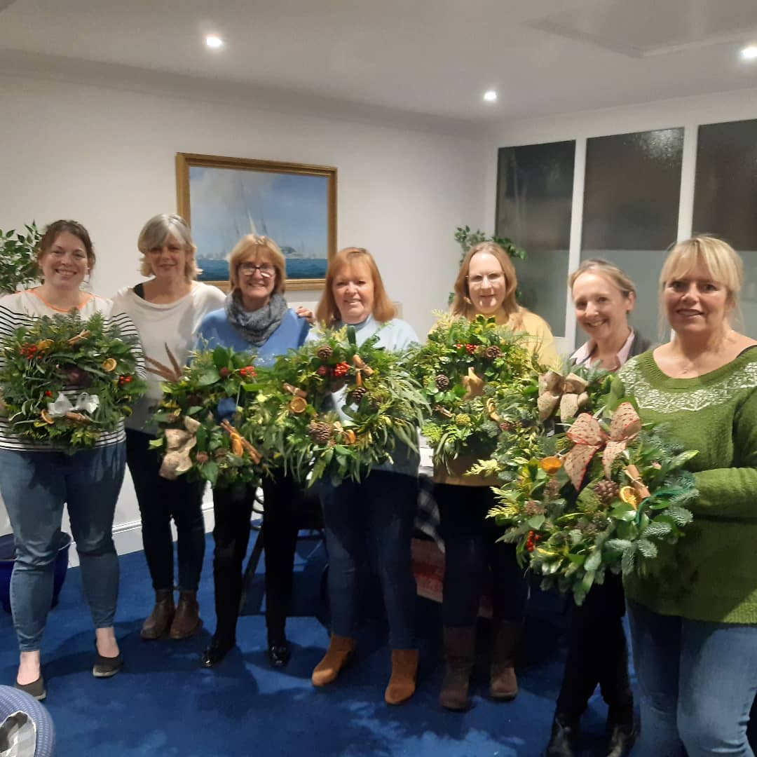 A group of carers relaxed and made beautiful wreaths under my tuition.